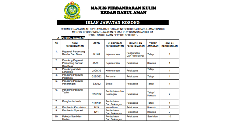 Jawatan Kosong Di Majlis Perbandaran Kulim Mpkk Jobcari Com Jawatan Kosong Terkini