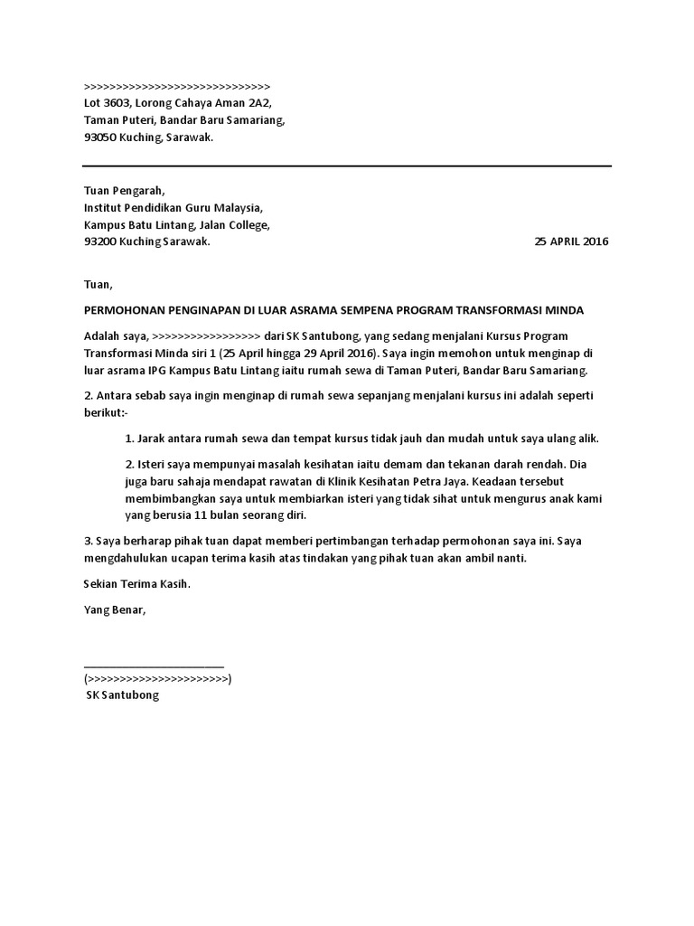 Surat Penginapan Ptm 2016