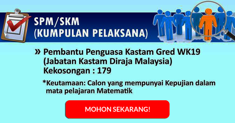 Jawatan Kosong Di Jabatan Kastam Diraja Malaysia Pembantu Penguasa Kastam Wk19 179 Kekosongan Jobcari Com Jawatan Kosong Terkini