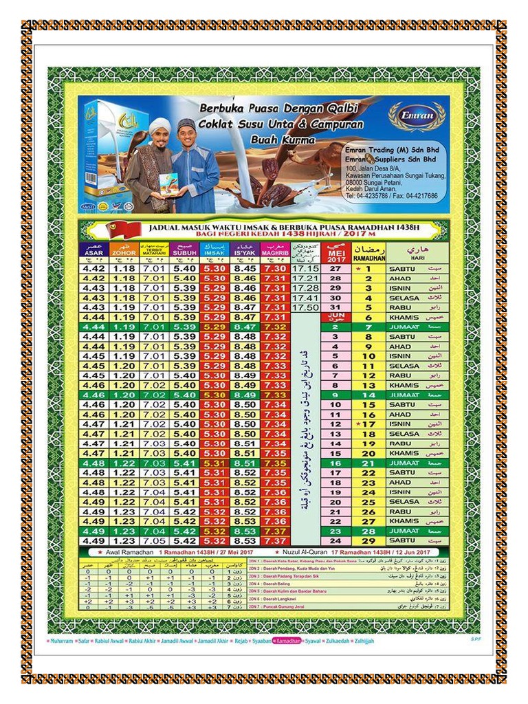 Waktu Berbuka Puasa Dan Imsak Negeri Kedah 2017 Pengedar Shaklee Kuala Lipis